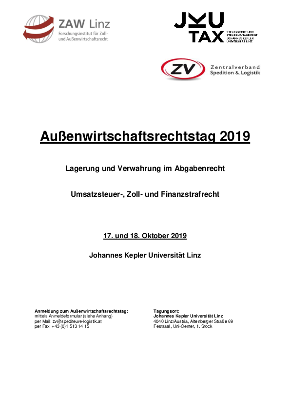 Universität Graz Rechtswissenschaften Institut für Finanzrecht Neuigkeiten Außenwirtschaftsrechtstag 2019 in Linz
