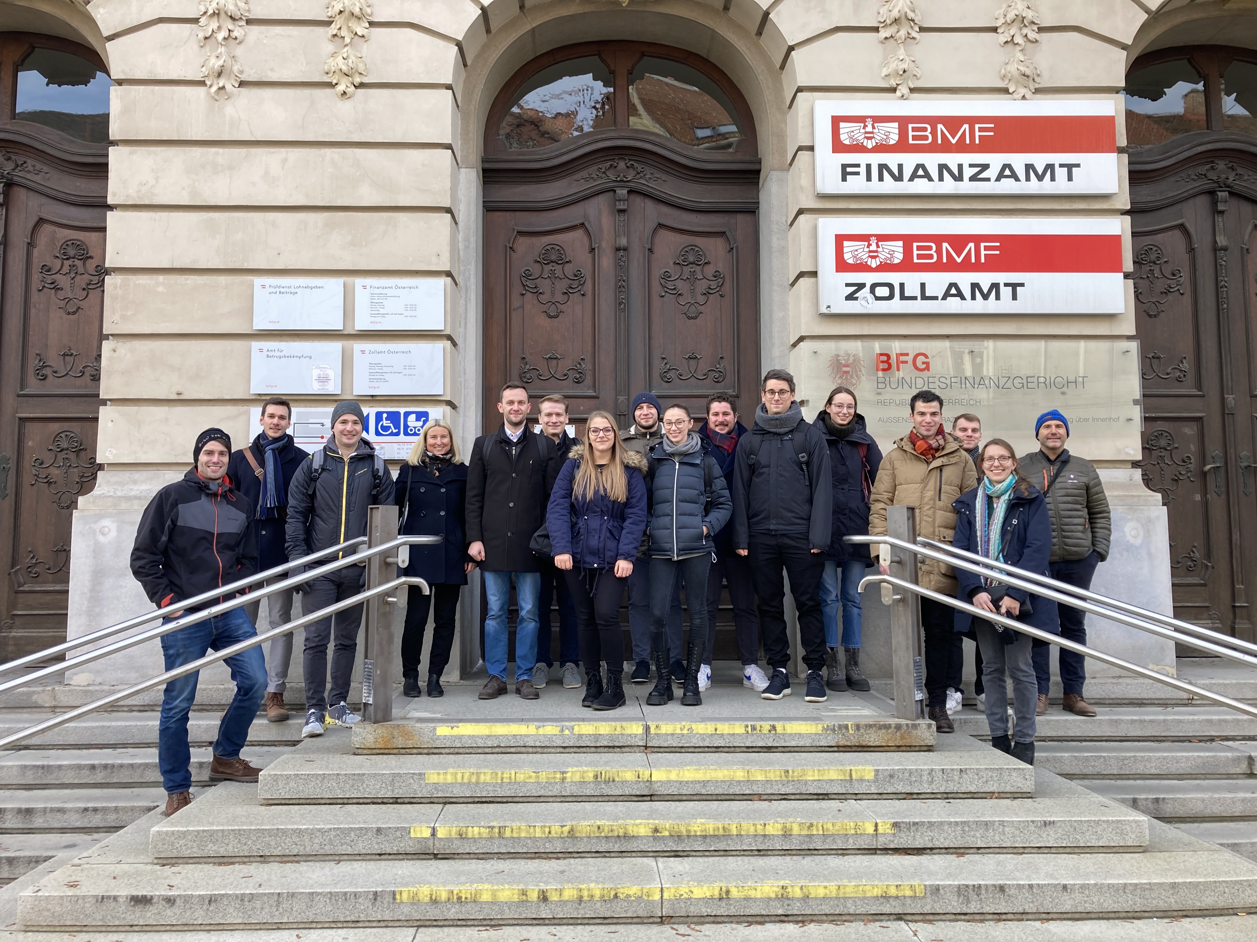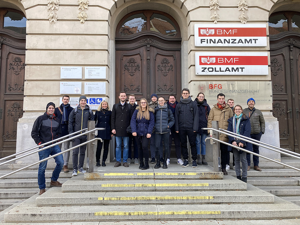 Die Teilnehmenden bekamen die seltene Gelegenheit, einer mündlichen Verhandlung vor einem Senat beizuwohnen und erhielten so aus erster Hand Einblicke in den Ablauf eines Verfahrens. Die Exkursion bot den Rahmen für den Semesterabschluss des neu ins LV-Programm aufgenommenen Seminars am Institut für Finanzrecht, das vor allem darauf abzielt, praxisnahe Inhalte aus dem Bereich des Einkommen-, Körperschaftssteuer- und Umsatzsteuerrecht zu vermitteln und den Studierenden das im theoretischen Studium erlangte Wissen mit Vertreter*innen aus der Praxis zu diskutieren und weiterzuentwickeln.