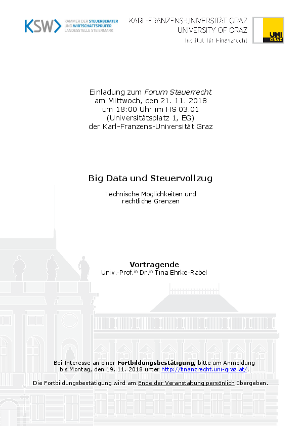 Termin: Mittwoch, 21.11.2018; 18:00 Uhr im HS 03.01, Universitätsplatz 1, EG der Karl-Franzens-Universität Graz (ein Campusplan ist hier abrufbar).